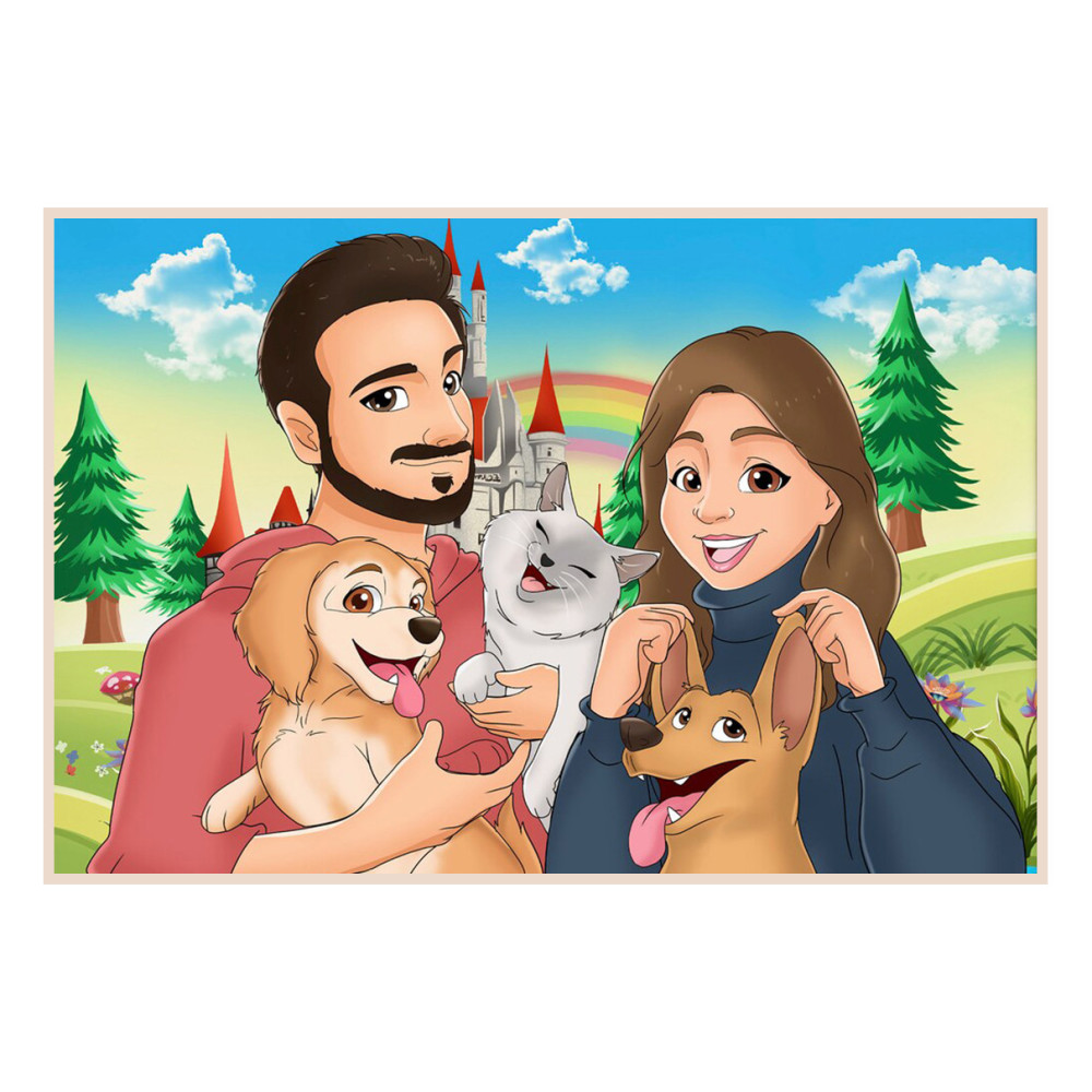 Digitálně ručně malované rodinné portréty